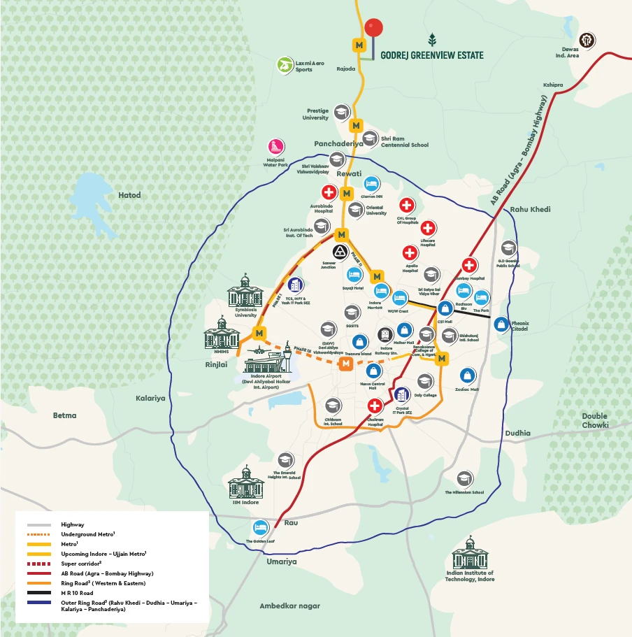 Contact Us:Godrej Greenview Estate, Indore-Ujjain Highway, Khasra No. – 92/2, 92/3 & 105 at village – Shahana, Tehsil – Sanwer, District – Indore (M.P.).